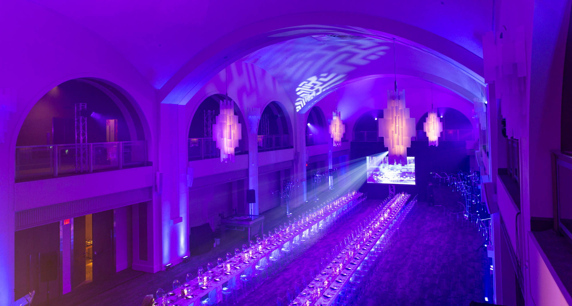 Arcadian is a versatile event space, with a maximum total capacity of 1500. Arcadian Court, an elegant ballroom, can accommodate up to 450 seated guests, and 1200 for a standing event.