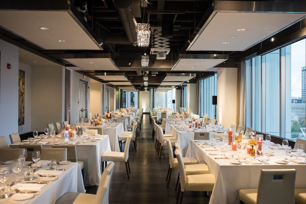 Arcadian Loft, a modern space overlooking the city, can accommodate anywhere from up to 250 seated guests and 400 for a standing reception.